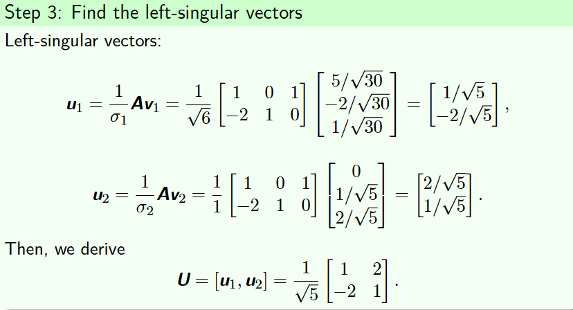 对V取竖行得到v1 v2, 计算1/σ * A * vn, 将得到的u进行品鉴