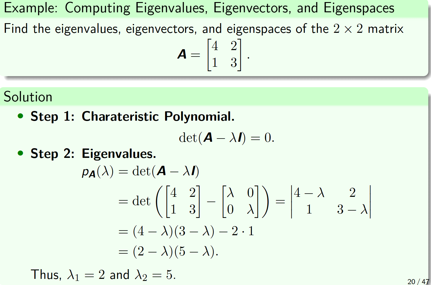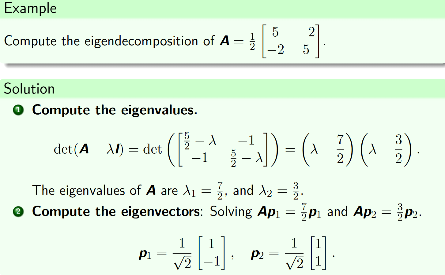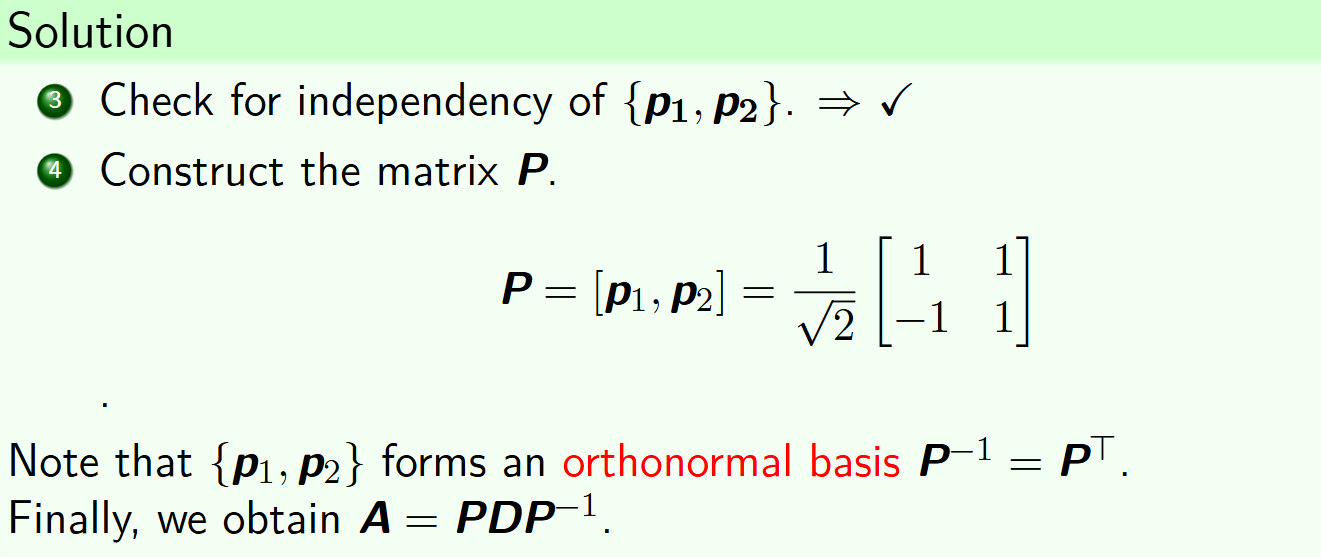 让所有解组合为一个新的矩阵,得到,计算A = PDP-1。其中D为对角矩阵,对角线上为特征值。