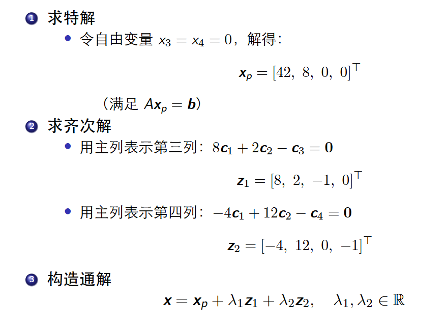 (求齐次解的时候,先化成行阶梯最简型)右边无关变量竖排就能表示成原变量的组合